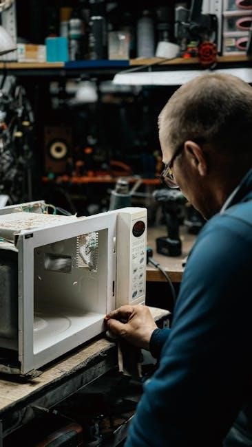 The display also communicates power levels and selected preset programs. Error codes, if any, appear to assist in troubleshooting. These visual cues ensure you’re always informed about the microwave’s status, promoting safe and efficient use.
